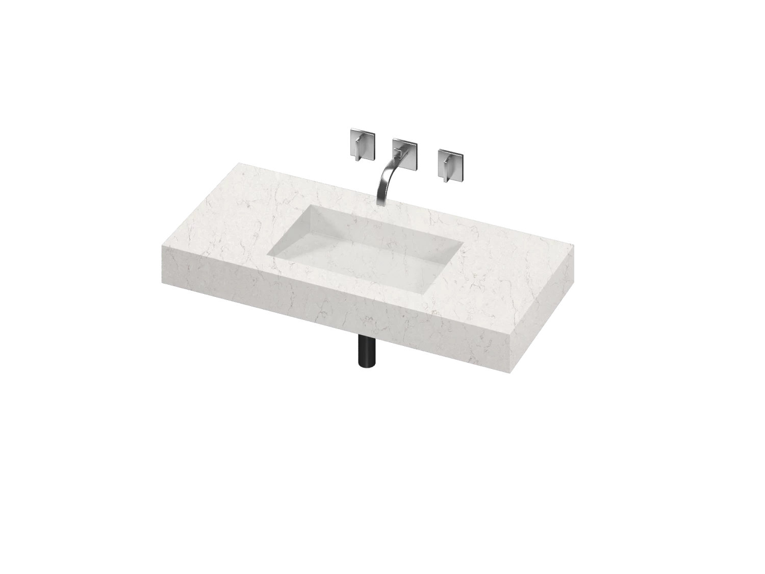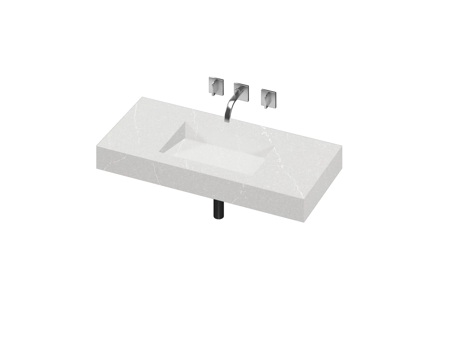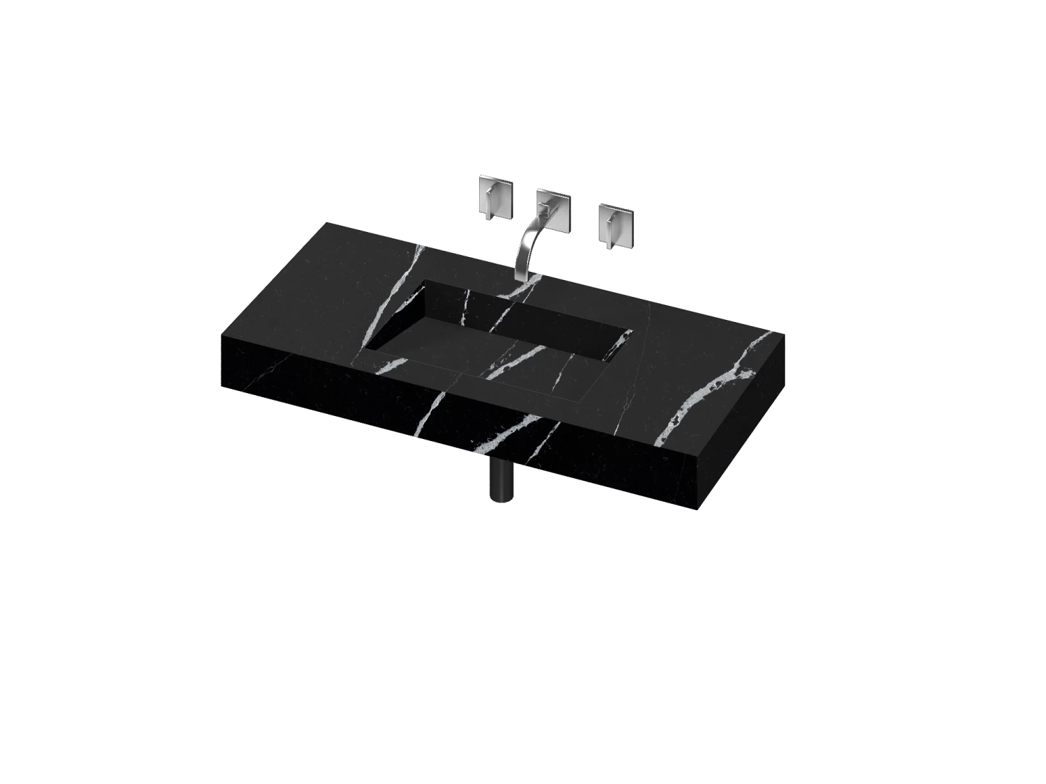 Crafted in the Almería region of Spain, the Armony Single basin vanity features a slanted basin, hidden drain, and 160mm mitered edge. Available in any Silestone colour.