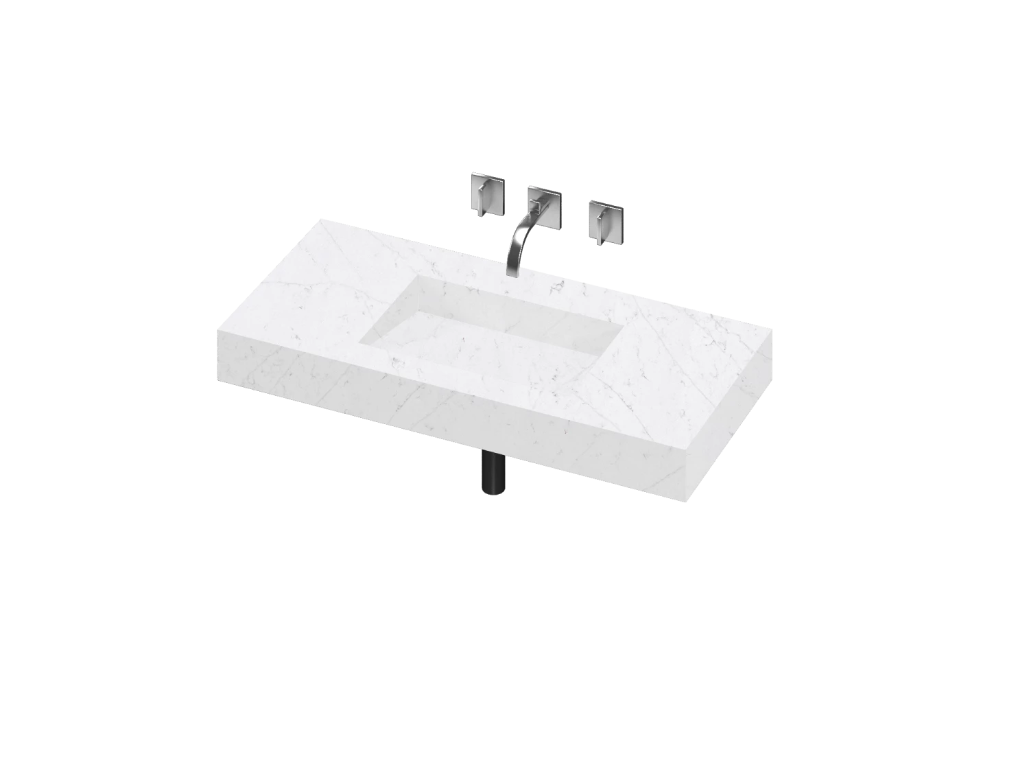 The ultimate integration of prestige craftsmanship and expertise in vanity composition is realized in the Almería Integrated Vanity Collection by Pearl x Cosentino.