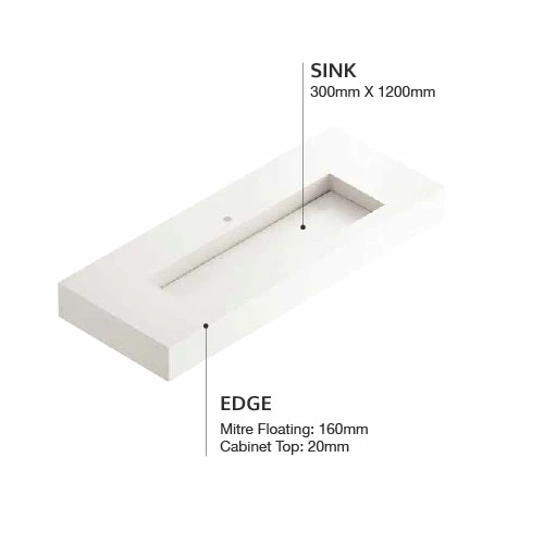 Crafted in the Almería region of Spain, the Silence 1200 vanity features a flat basin and hidden drain. The 160mm mitered edge gives the appearance of a floating vanity. The Silence 1200 is available in any Dekton colour.