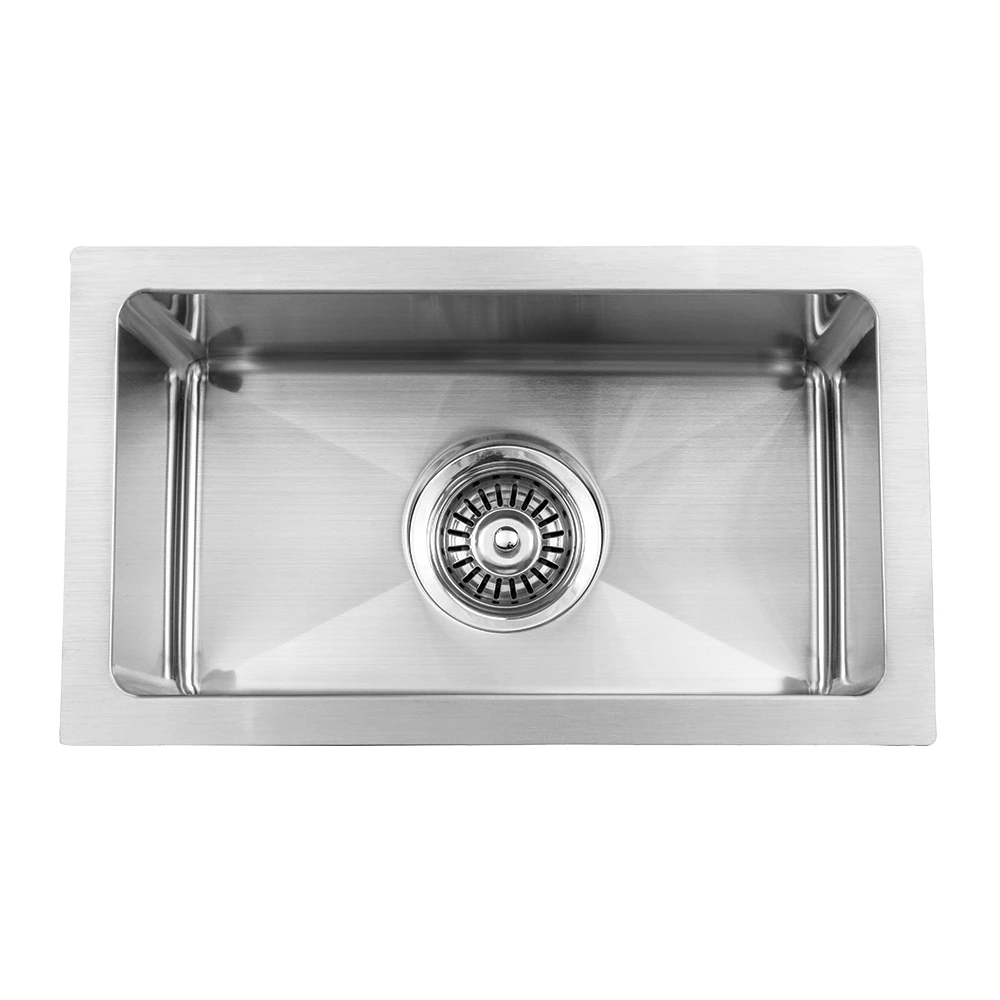 - Satin-finished sink bowls.