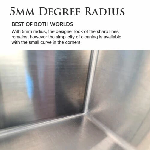 The QILA W features are designed to maximize your freedom of movement. It is built with 16 gauge stainless steel finished with satin. Its minimal radius corners provide easy maintenance and style.